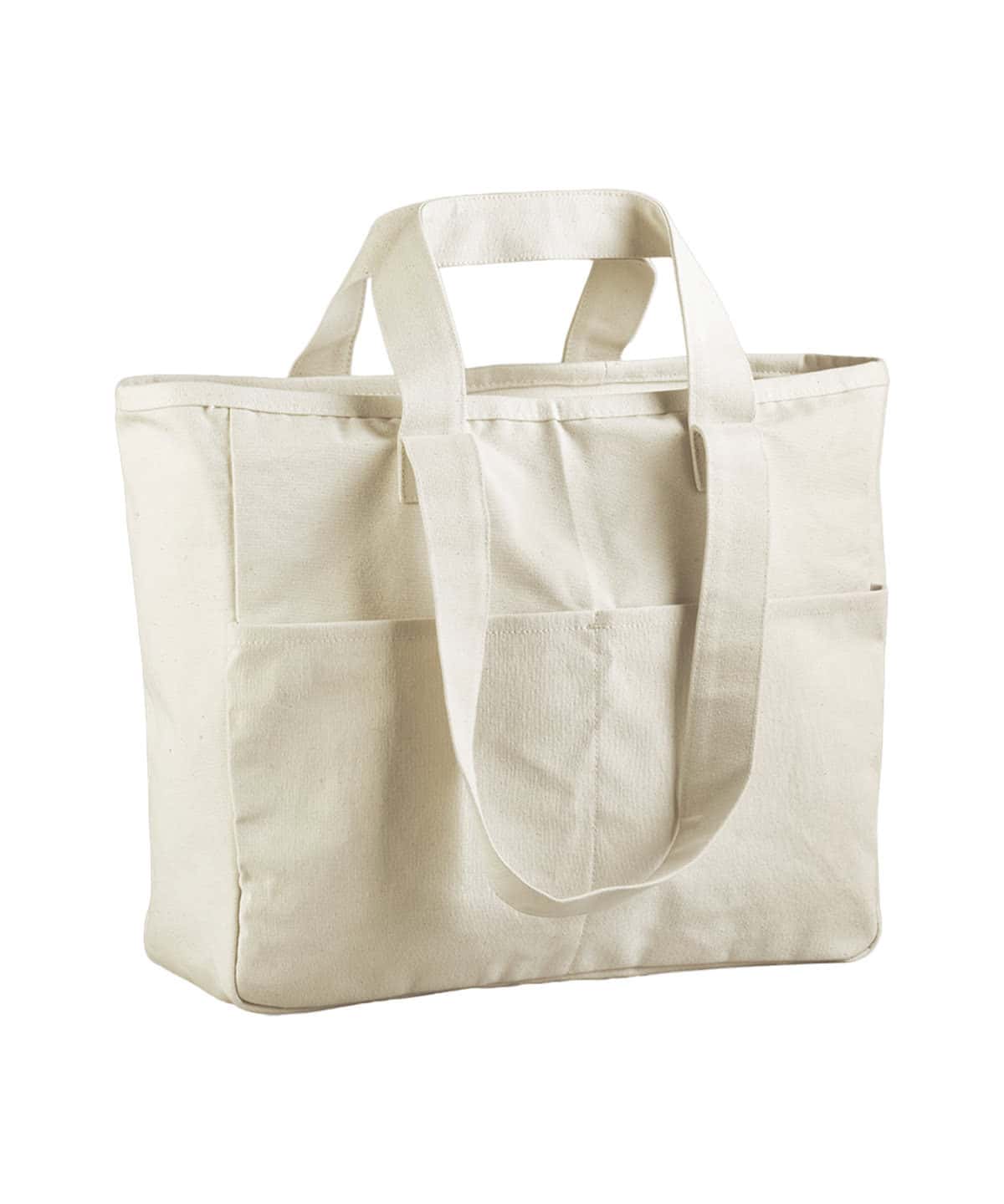 Product details: Premium heavyweight fabric. Durable canvas construction. Large capacity. Two front pockets. Zipped main compartment. Nylon zip with self-fabric pull. Dual self-fabric carry handles. Can be carried by hand or over the shoulder. CutAway label for ease of rebranding. Sizes One size 100% Cotton canvas – 475gsm (14oz/yd²) 100% Cotton 452gsm Sponge clean only