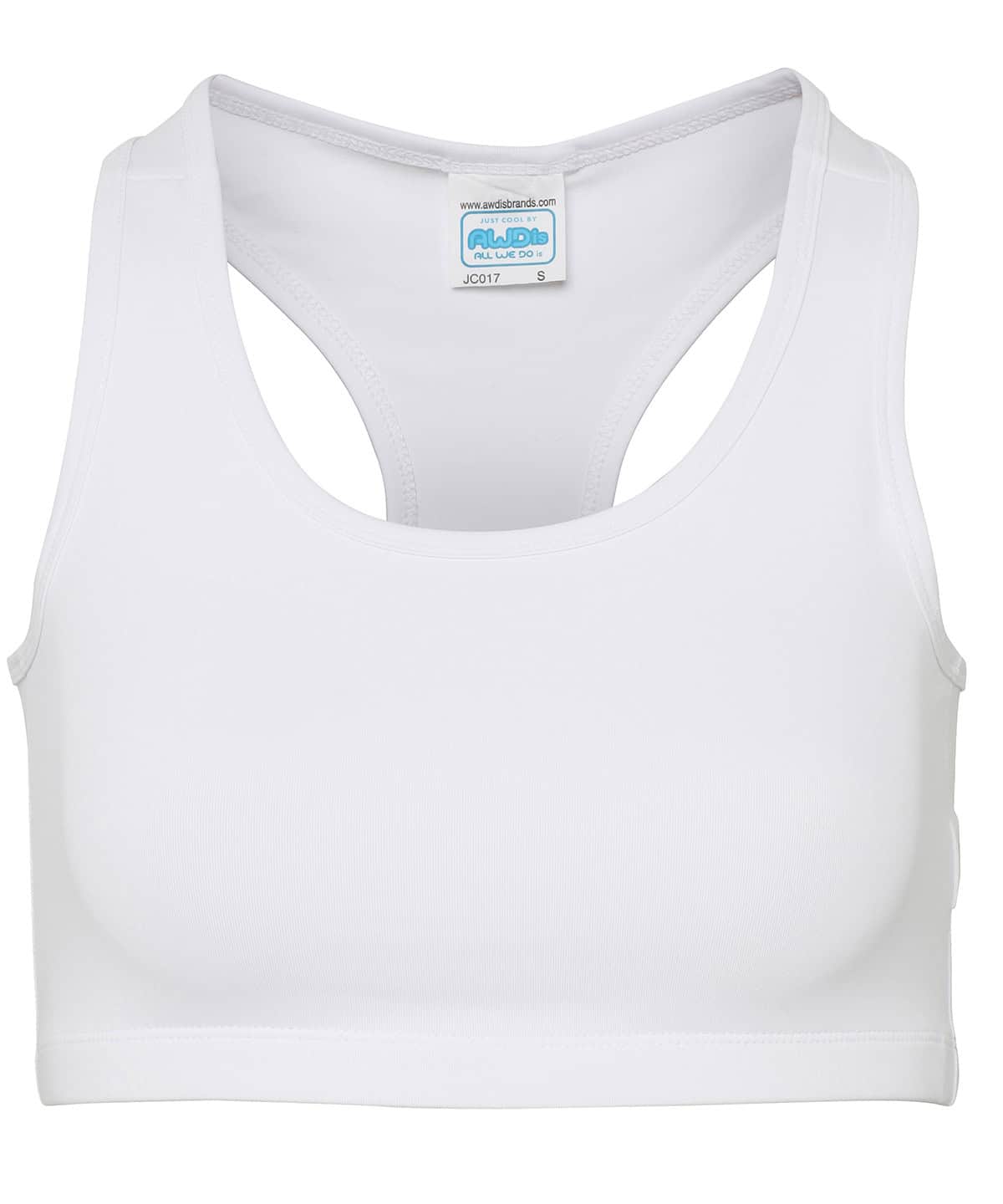 Product details: AWDis own CoolFit blended fabric containing elastane that provides stretch for comfort and a great fit. Racer back design. Scoop neckline. Pull on style. Elasticated under band for secure fit. Self-fabric binding around neckline and armholes for a clean finish. Simple tear off label makes it perfect for rebranding. UPF of 30 protection.