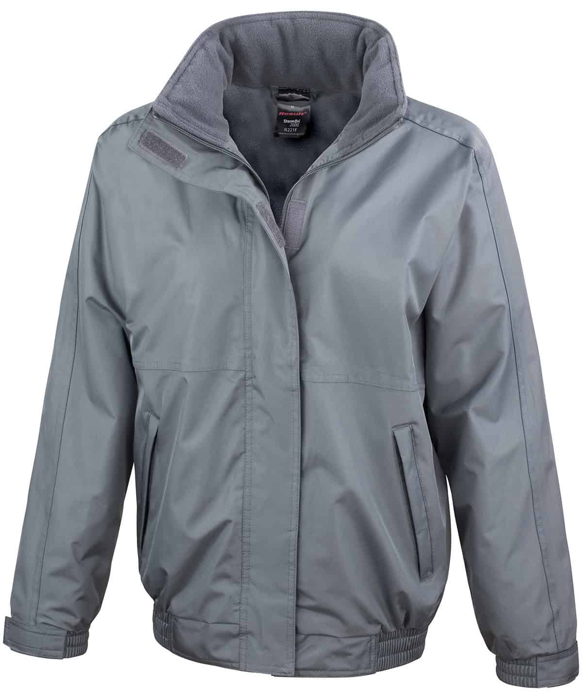 - Full front zip with tear-release storm flap